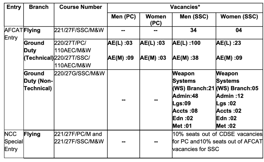Flying Branch AFCAT and NCC Special Entry பணிகளுக்கு: