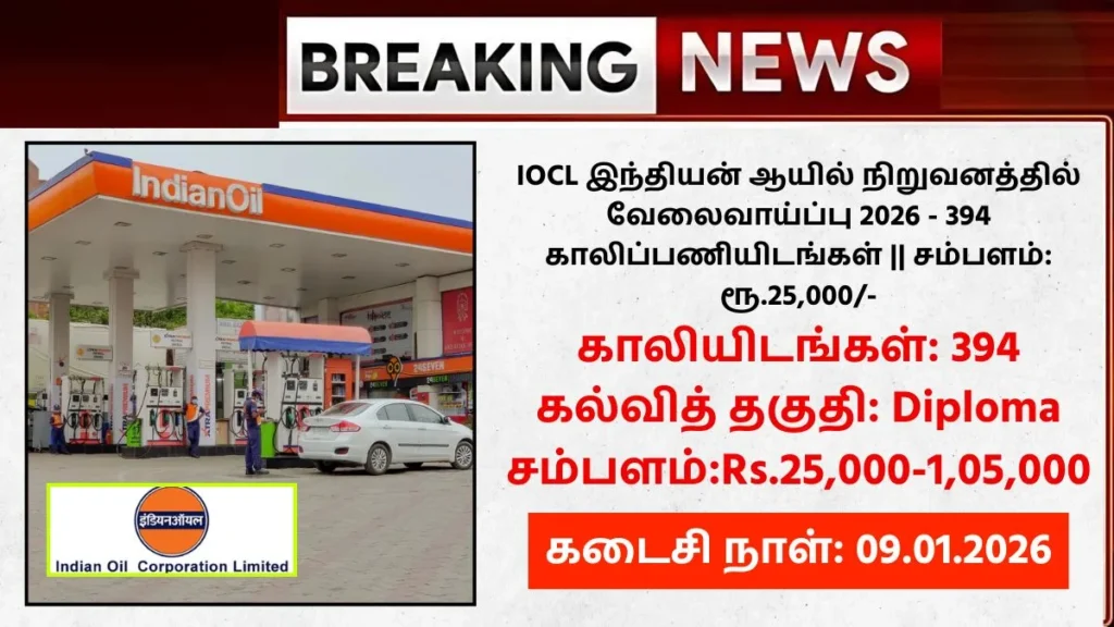 IOCL இந்தியன் ஆயில் நிறுவனத்தில் வேலைவாய்ப்பு 2026 – 394 காலிப்பணியிடங்கள் || சம்பளம்: ரூ.25,000/- IOCL Recruitment 2026 Guna / December 24, 2025